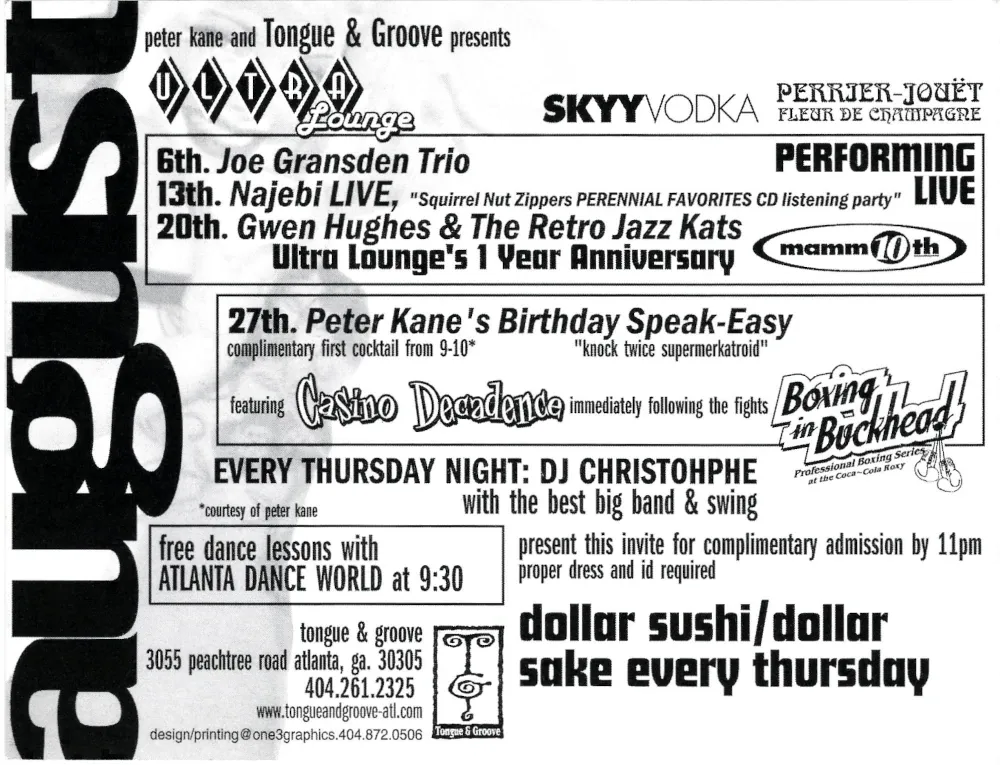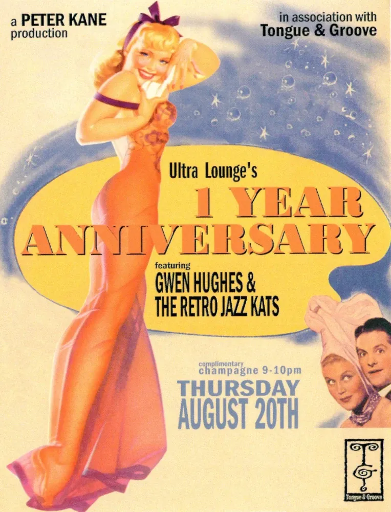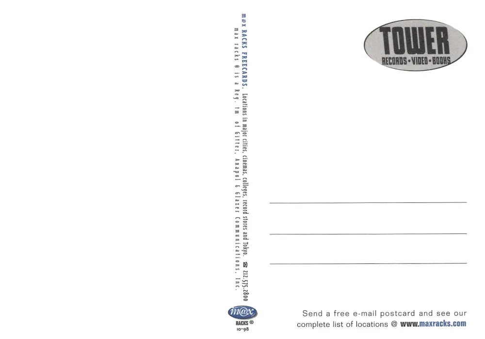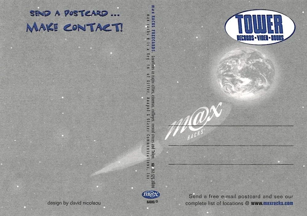 Then there are cards like the Ultra Lounge anniversary piece, glowing in gold and mid-century pin-up charm. It captures that swing-revival aesthetic that briefly took over the late 1990s, a world where bands dressed in 1940’s suits and sang into chrome microphones under neon lights. Even if you weren’t playing swing music yourself, that whole scene was in the air. It blended into everything, fashion, advertising, design. The postcards from that period are drenched in it, filled with exaggerated glamour and a nod to the past, but they also felt undeniably modern.