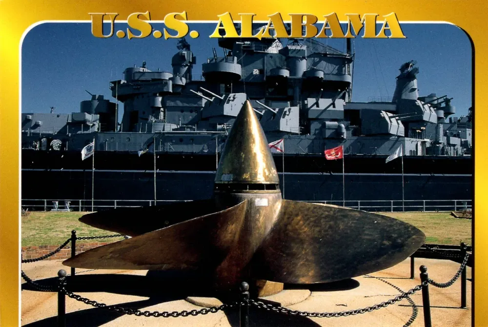 And then, out of nowhere, the U.S.S. Alabama postcard drops you into something completely different. That’s what I love about this collection — the shifts in tone, the unexpected finds. One night I’d be picking up a club promo card under dim stage lights, and a few days later I’d be walking through a naval museum in Mobile, collecting a glossy print of a battleship propeller gleaming in the sun. The contrast between them tells the real story of touring life: constant movement, constant change, and the beauty of finding art everywhere. in diners, gift shops, and the backs of music venues.